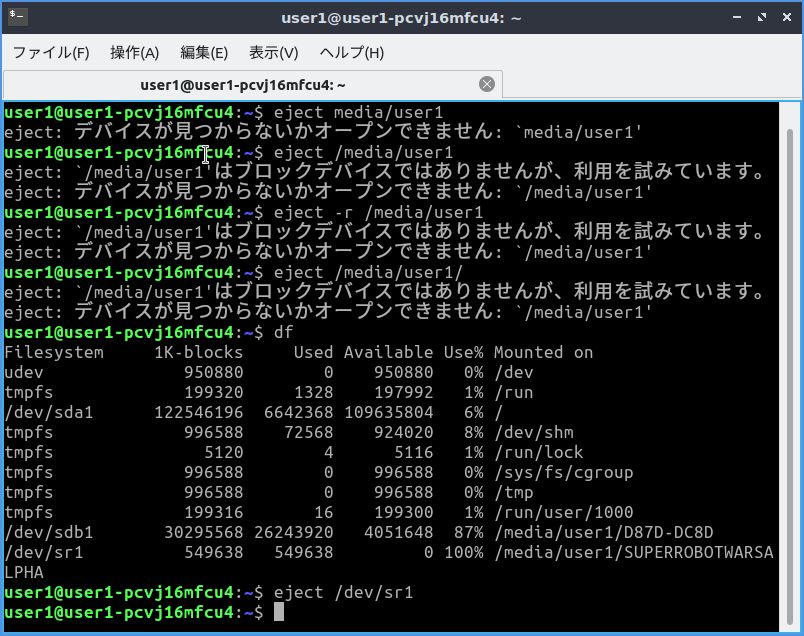 インデックス » Ubuntuに関する質問 » CD や DVD のマウント場所を確認したい