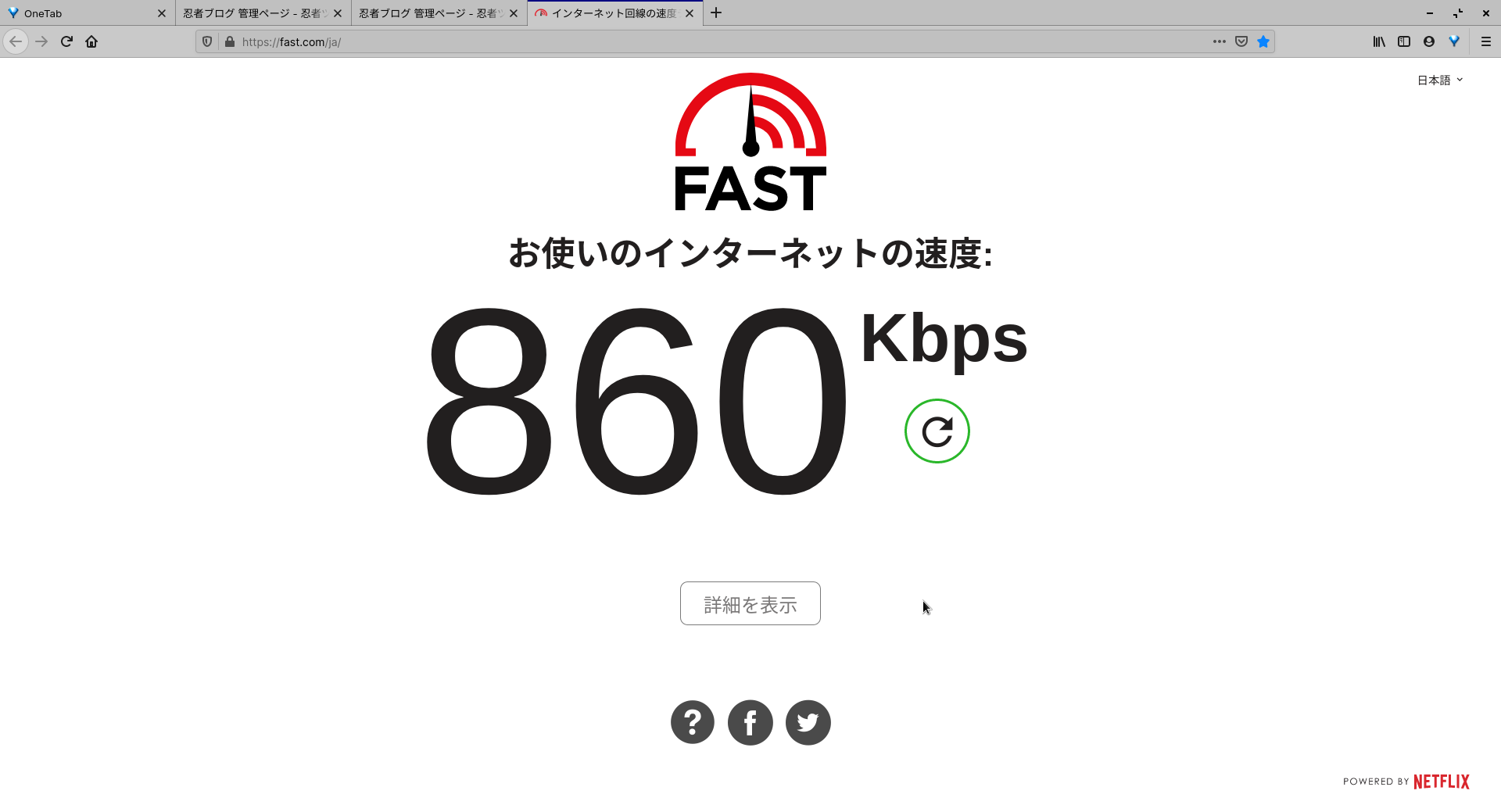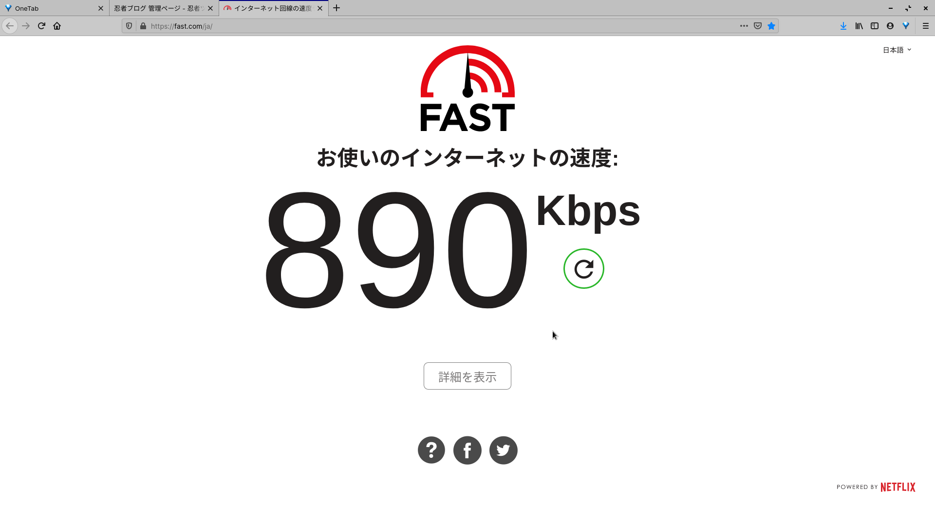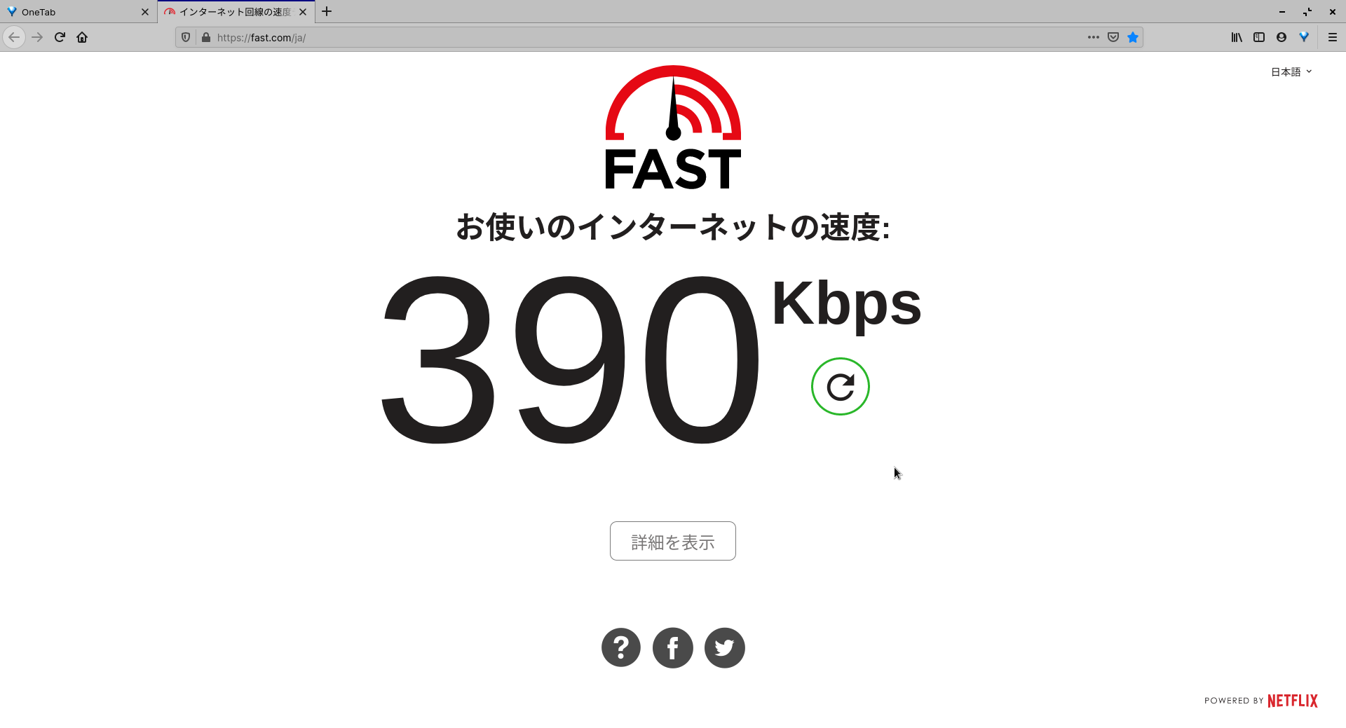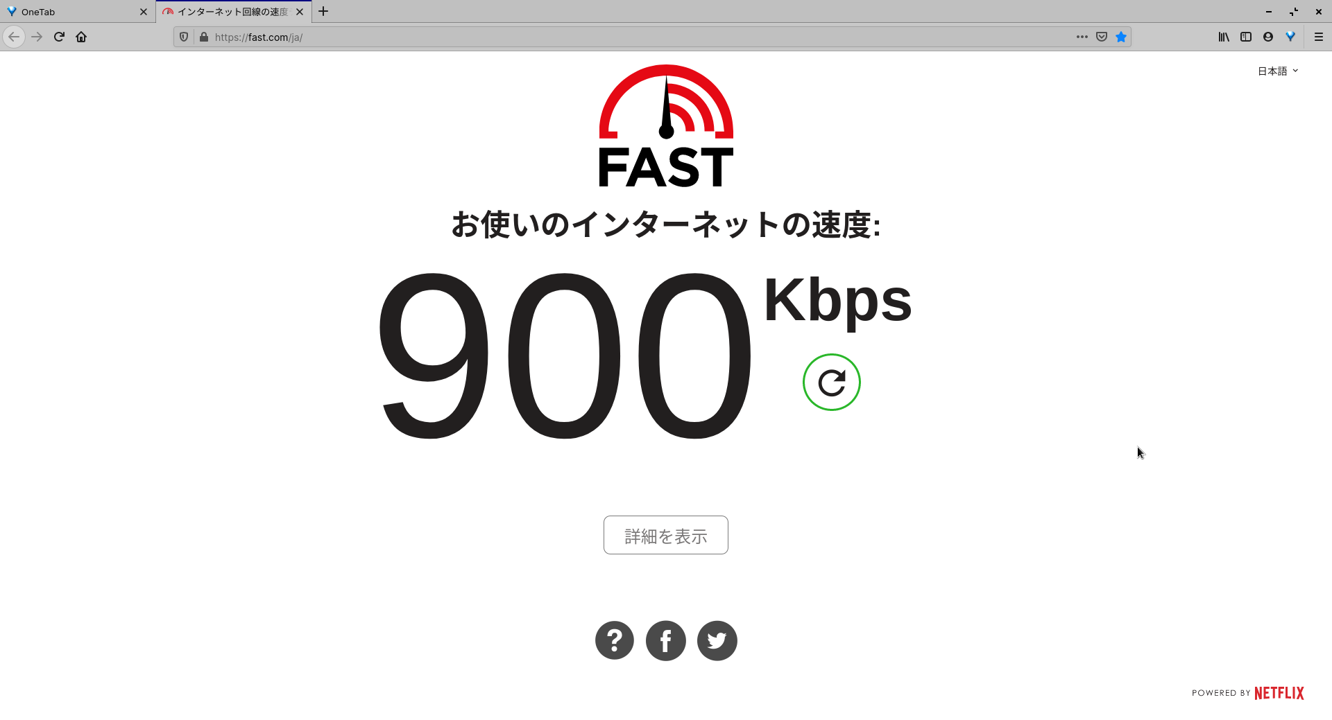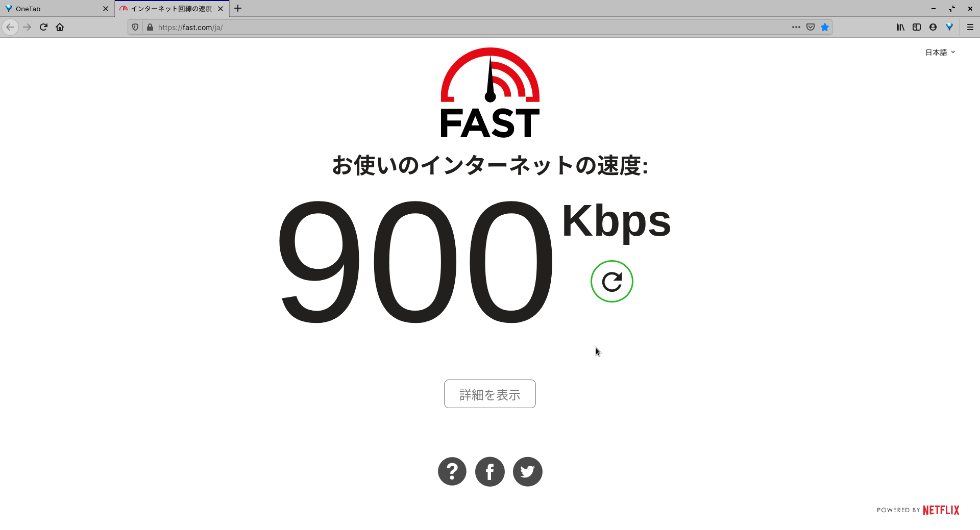 昨日も一昨日も、ファイルを落とすときは100kbps前後の速度しか出ませんでした。