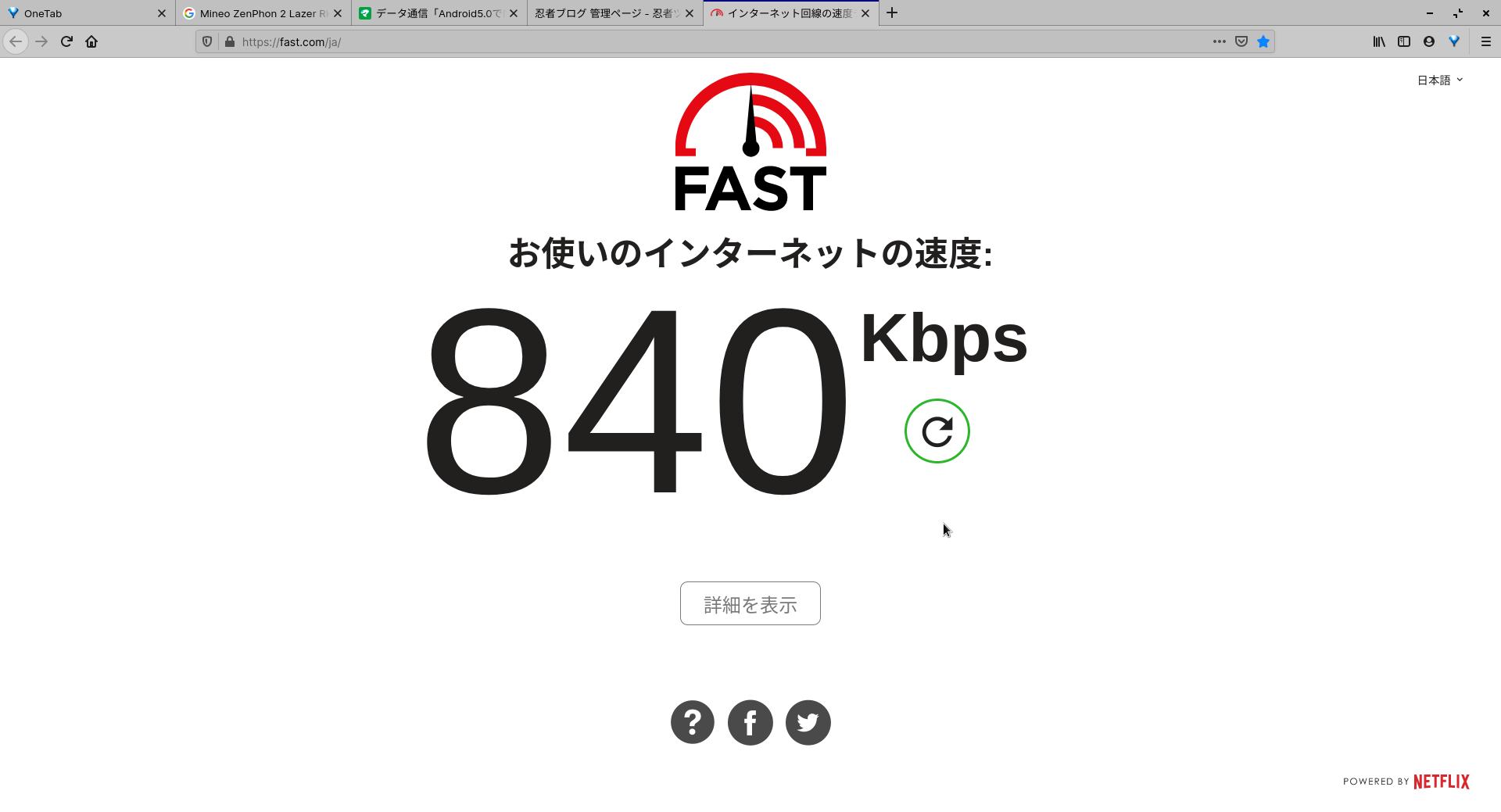 お昼なのに840kbps! この時間帯としては驚異的な速度です。