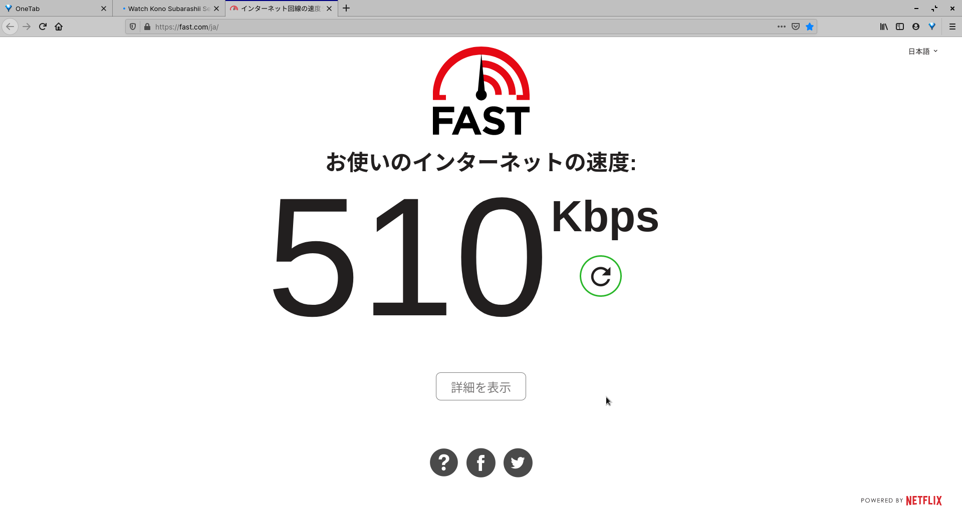 13:45に計測したときから今までネットで映画を見ていたのですが、時々画面が止まり読み込み中のぐるぐるマークが表示されましたが、どうにか映画を見れました。