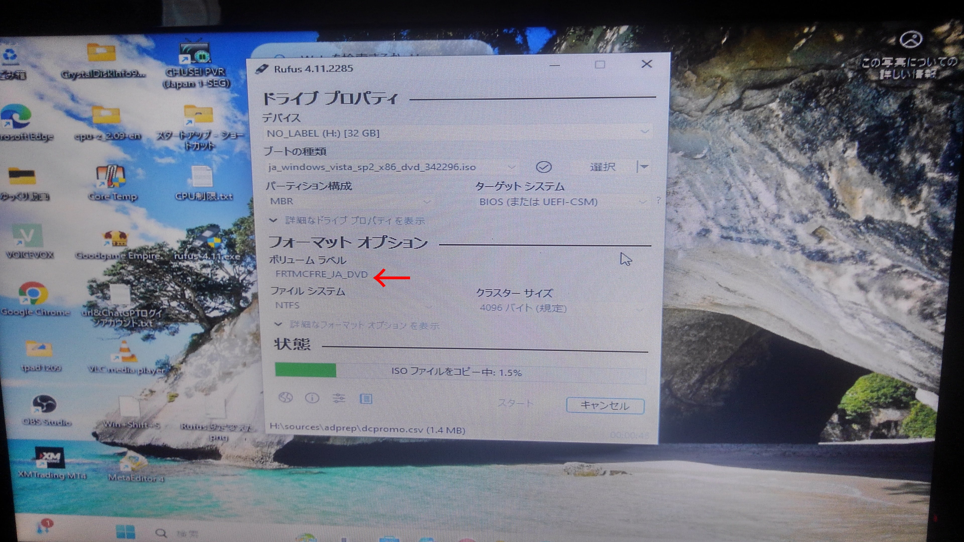 Vistaを再インストールしたくなってWin11マシンでRufusを使ってVistaのisoをUSBメモリに焼いたら何故かブートできなかった。